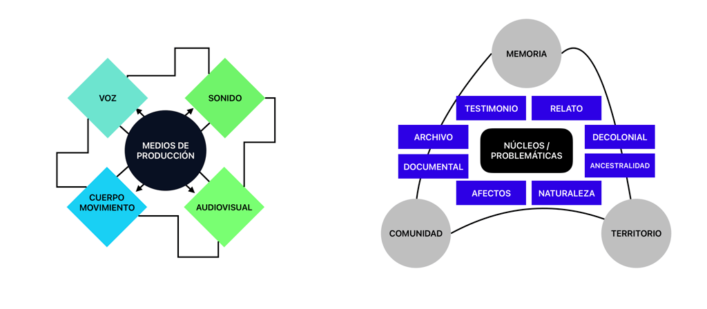 Trabajamos en la intersección del arte contemporáneo, y los procesos comunitarios. Utilizamos el relato y el testimonio como material para nuestra alquimia.
