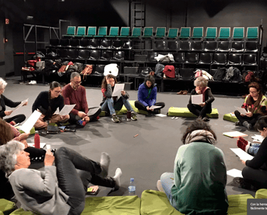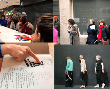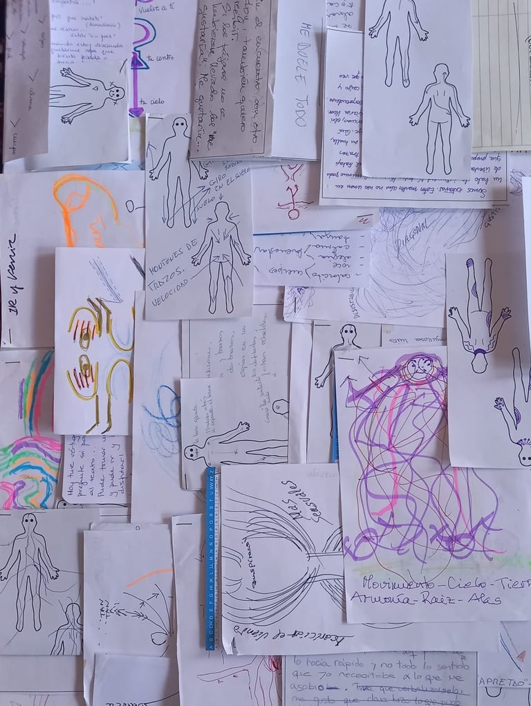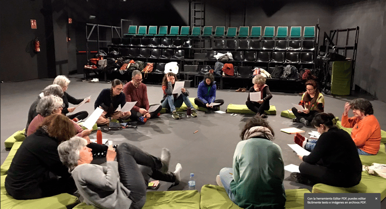 Piel de la letra is a piece of creation in performing arts, where word, voice, movement and writing are linked from different biographical pulsations of its performers. Live shared space-time where 15 bodies ages between 35 and 67 dialogue, moving words and sound in the direction of a more integrated and complex thought. Fractal and rhizomatic desire to imagine from the void and reappropriate new ways of perceiving and understanding the history of their bodies.